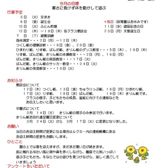 2月のえんだよりができました👦