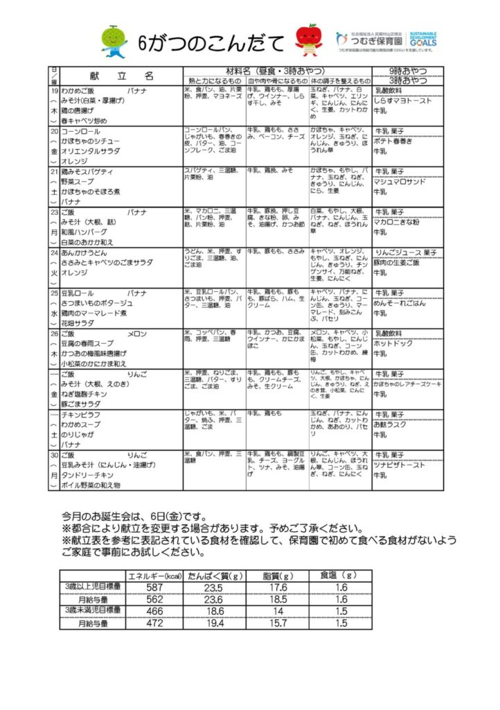 6月の献立ができました🍴