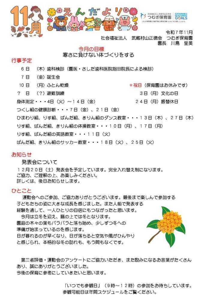 11月のえんだよりができました👧
