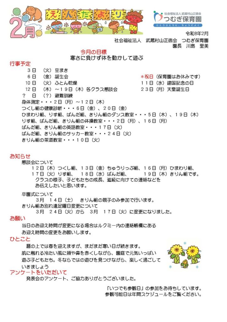 2月のえんだよりができました👦