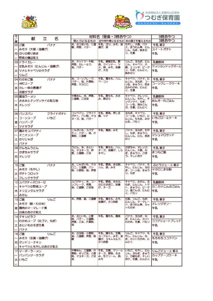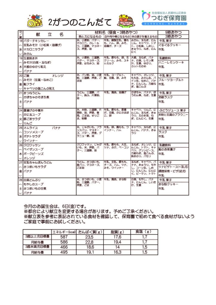 2月の献立ができました🥄