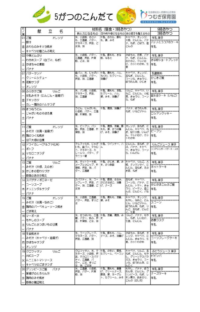 5月の献立ができました🍴